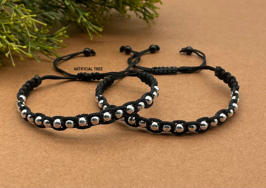 German Silver Ball Charms Black Thread Adjustable Anklet (Payal) for Women and Girls